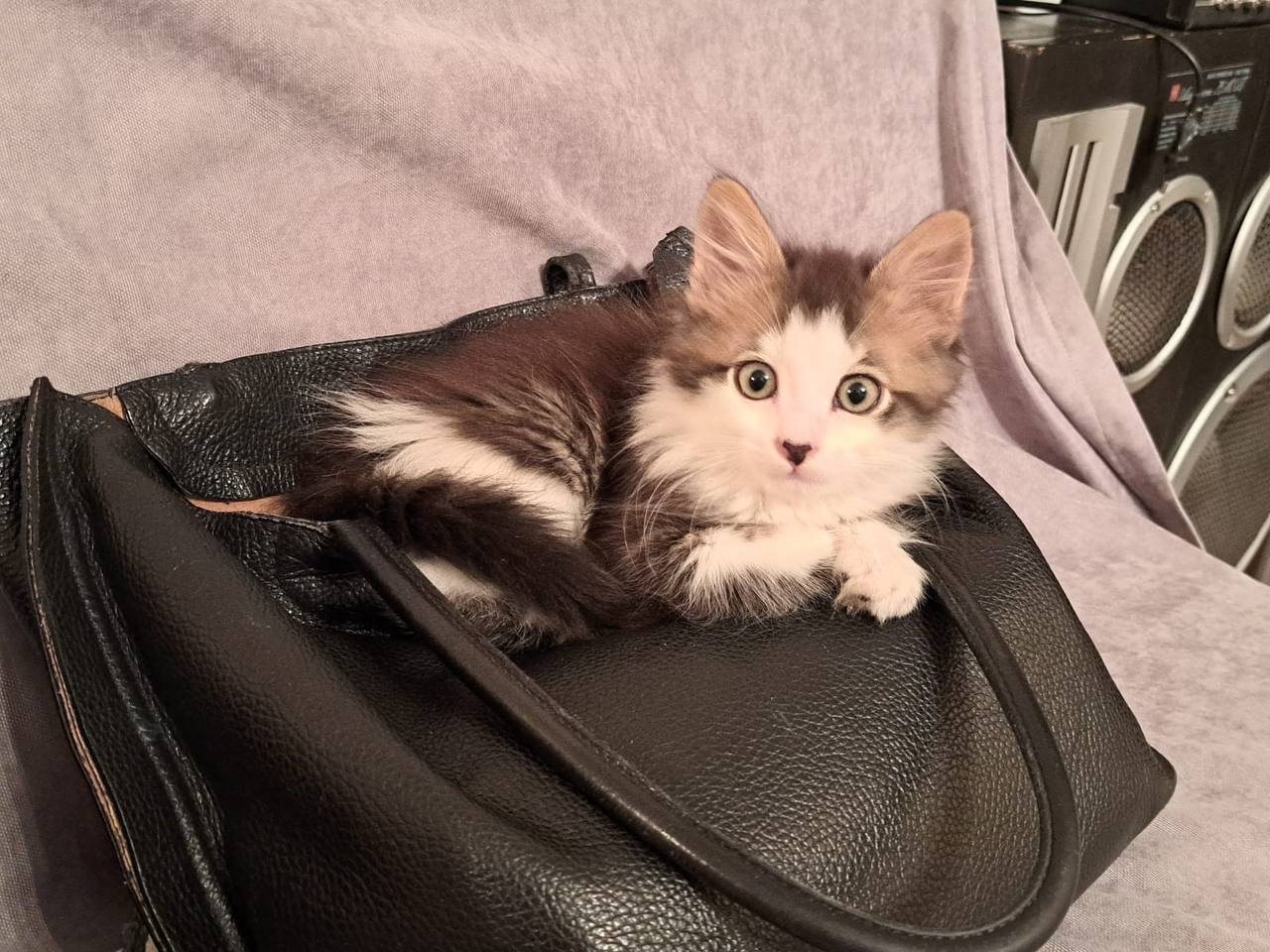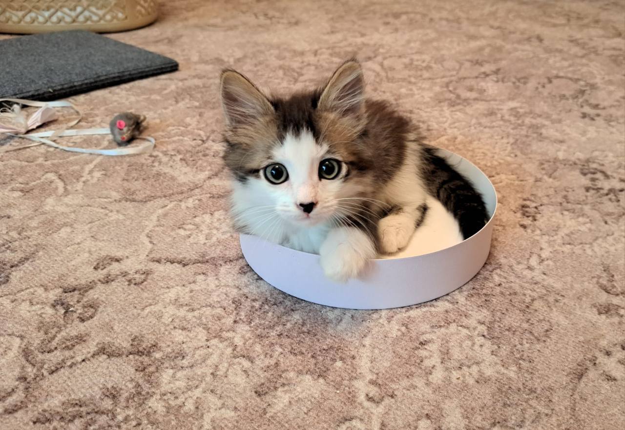 Котенок, спасенный сотрудницей ГК «Исток» на трассе, обрел семью.