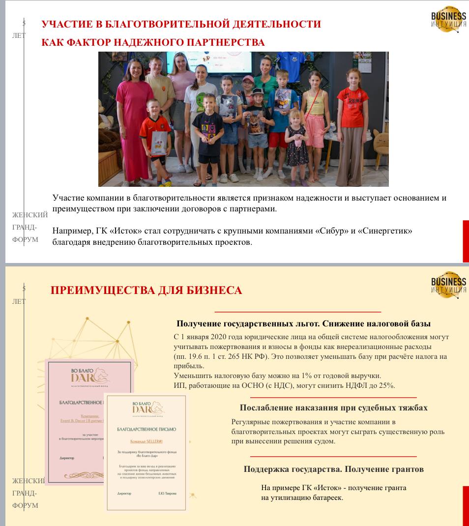 16 июня директор фонда Екатерина Таврова выступала спикером на конференции «Бизнес интуиция» с темой «Интеграция благотворительности в бизнес на личном примере. Рост показателей бизнеса», на котором наглядно показала, как благотворительность помогает увеличить показатели бизнеса 💪🏽