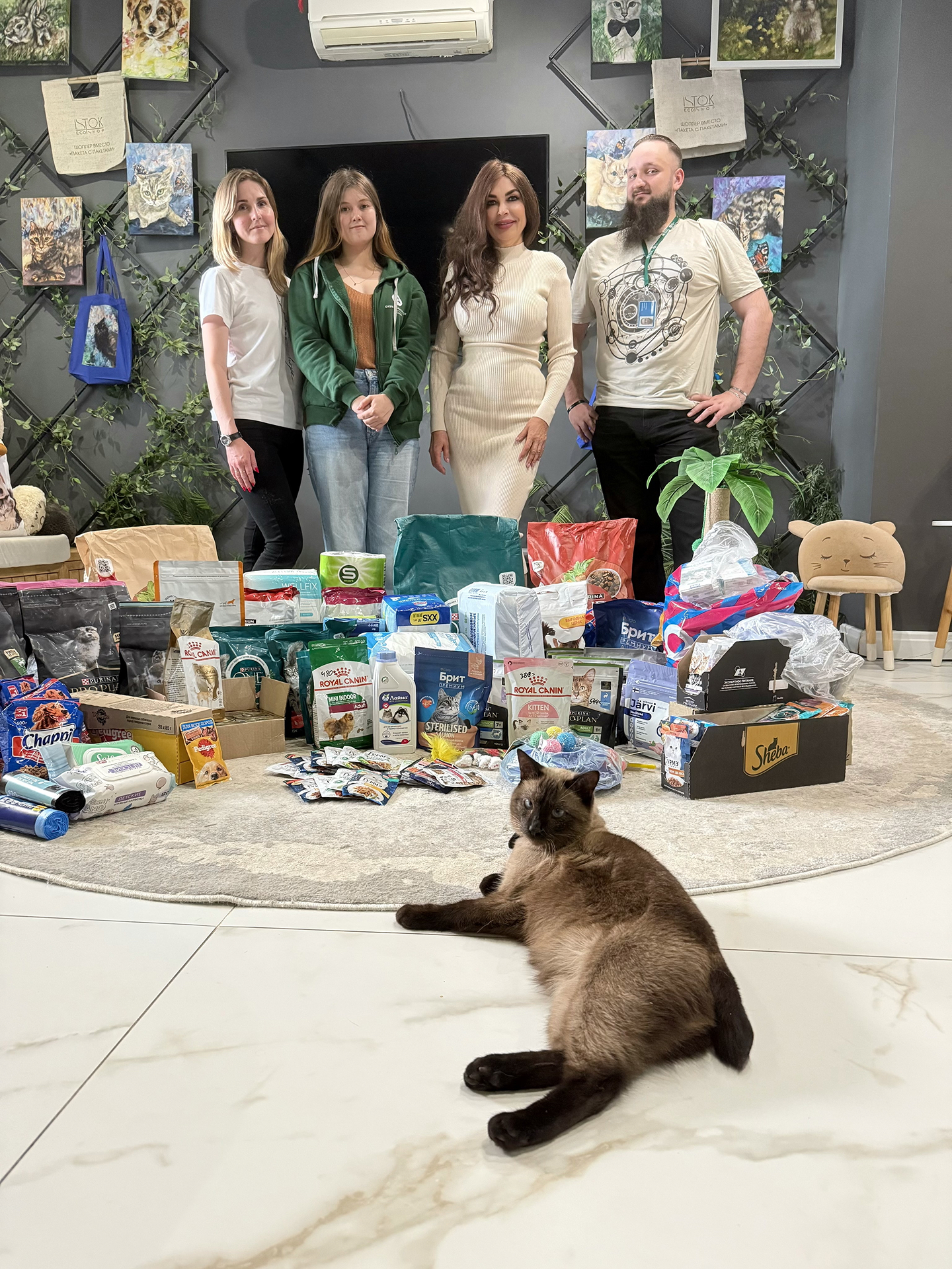 Большое количество кормов для собак и кошек, лекарств, игрушек и других расходных материалов было передано в фонд.