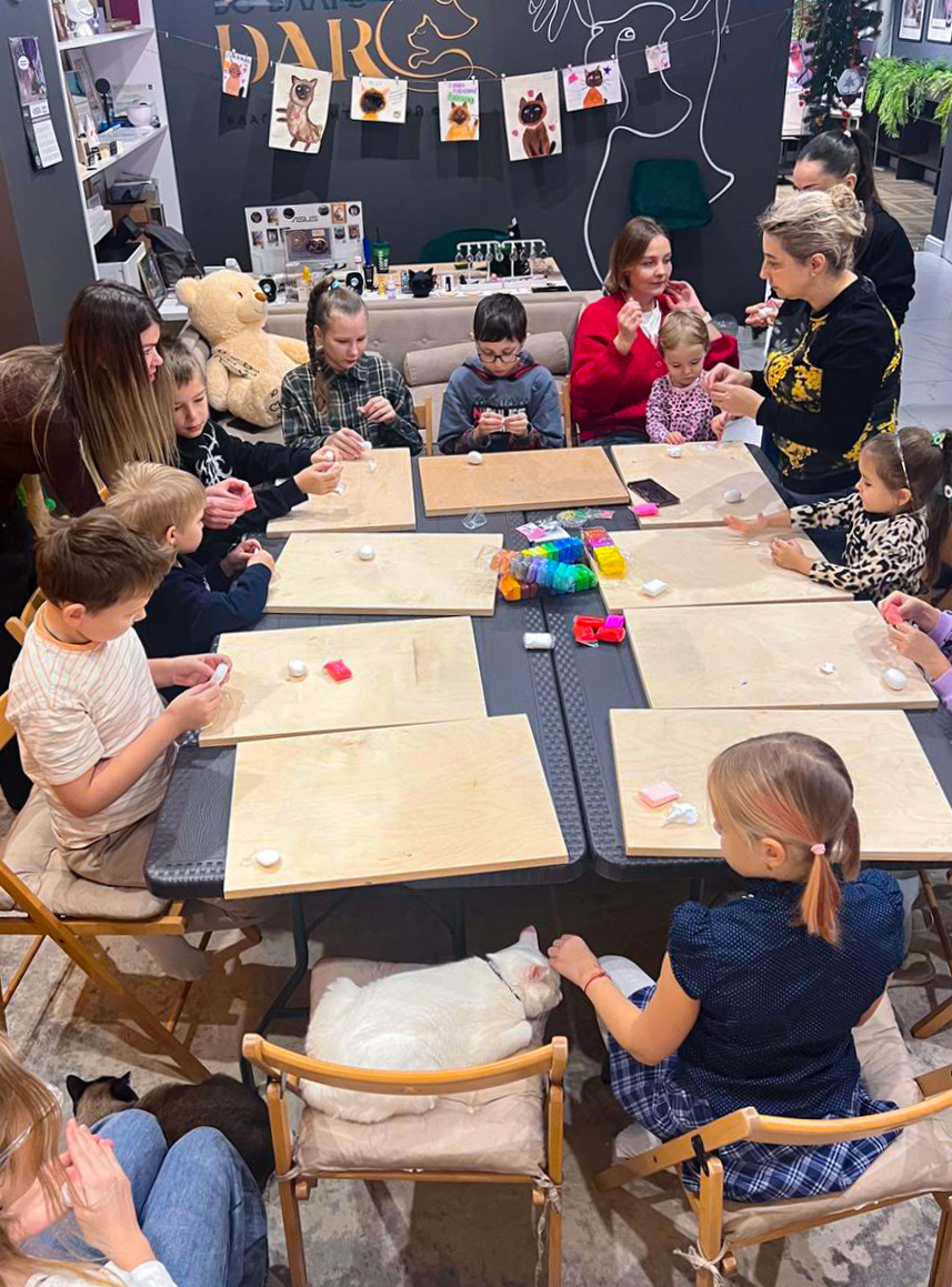 Встречали первый снег и делали с ребятами милейшие магнитики котика Зефира из пластилина. Пили чай с зефирками и играли с котиками!